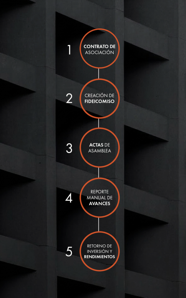 Para plena seguridad del inversionista, el capital invertido se deposita en un fideicomiso creado en conjunto con él, garantizando su aplicación en la adquisición de terrenos y la construcción de los desarrollos convenidos en las actas de asamblea que se realizan con cada inversionista, en las que también se definen sus beneficiarios, por lo que su capital siempre queda seguro.